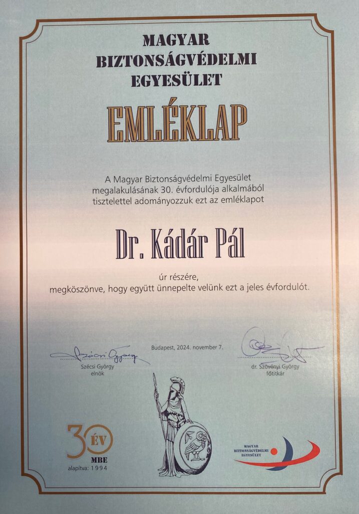Megünnepelte megalakulásának 30. évfordulóját a Magyar Biztonságvédelmi Egyesület.